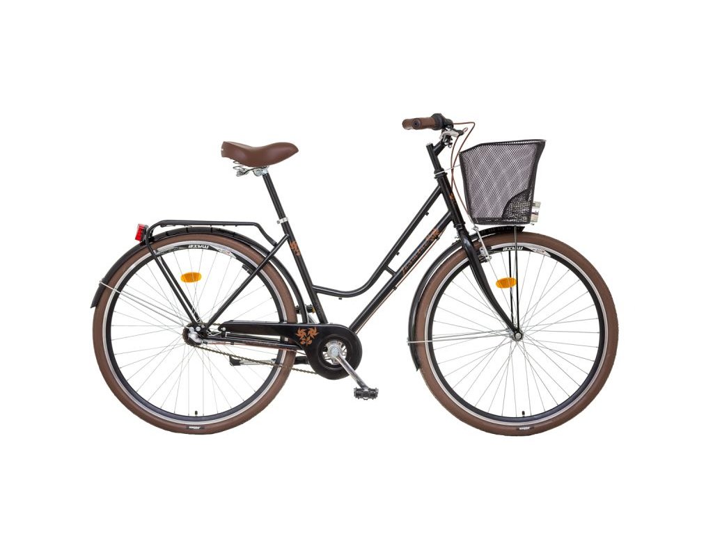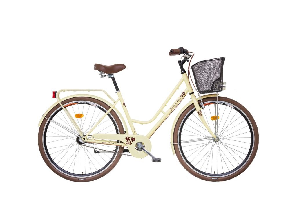 28" LIBERTY JASMINE 3 SPD, 3 rychlostní retro kolo v holandském stylu, rám Hi-TEN, velikost 19" UNI, přehazovačka v zadním náboji SHIMANO NEXUS, otočné řazení SHIMANO REVO, pohodlné rozšířené šité sedlo, rukojeti imitace kůže, pláště MITAS obuté na zpevněných DOUBLEWALL ráfcích. Výbava kola je rozšířená o přední koš, nosič se záklopem, sadu LED osvětlení, blatníky v barvě kola a stojan.V nabídce také 1-no rychlostní a 6 - ti rychlostní varianta