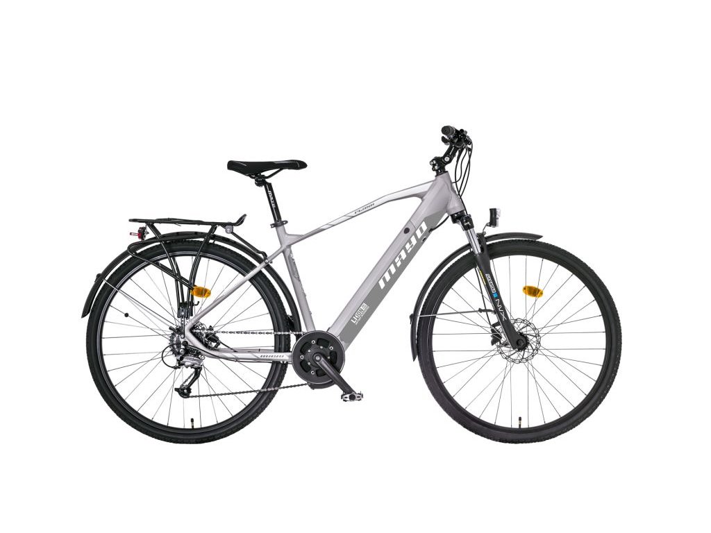 ELEKTROKOLO MAYO e-XR Flasch LITE ve velikosti 28", dojezd 35 -120 km, baterie Li-ion 36V/14Ah (500Wh) integrovaná v rámu, vnitřní vedení kabeláže, středový motor 36V /250W, odlehčený rám (slitina hliníku AL6061), přední odpružená vidlice SUNTOUR zdvih 100mm, páčkové řazení, 10 převodů, HYDRAULIC DISC brzdy, dvojité ráfky, pláště CST.Elektro kolo MAYO e-XC Flasch LITE DISC BB s motorem 36V/250W integrovaným ve středu rámu, akumulátor na rámu kola, LCD displey s ukazatelem cyklo funkcí, nastavením stupněm podpory ve 4 úrovních. Motor je vybavený torzním snímačem přítlaku na pedály. Podle sily přítlaku a nastaveného stupně podpory dávkuje kroutící moment až do rychlosti 25 km/h. Na jedno nabití je dojezd 35 až 120 km v závislosti na profilu tratě, hmotnosti a asistence jezdce, a nastaveného stupně podpory. akumulátor , 36V/14 Ah, Elektro kolo MAYO e-XC Flasch LITE DISC vyhovuje normě STN EN 15 194, tzn. že je možné ho provozovat na pozemních komunikacích bez nutnosti řidičského průkazu a jiných dokladů.