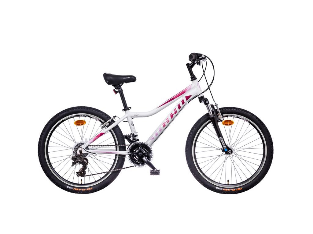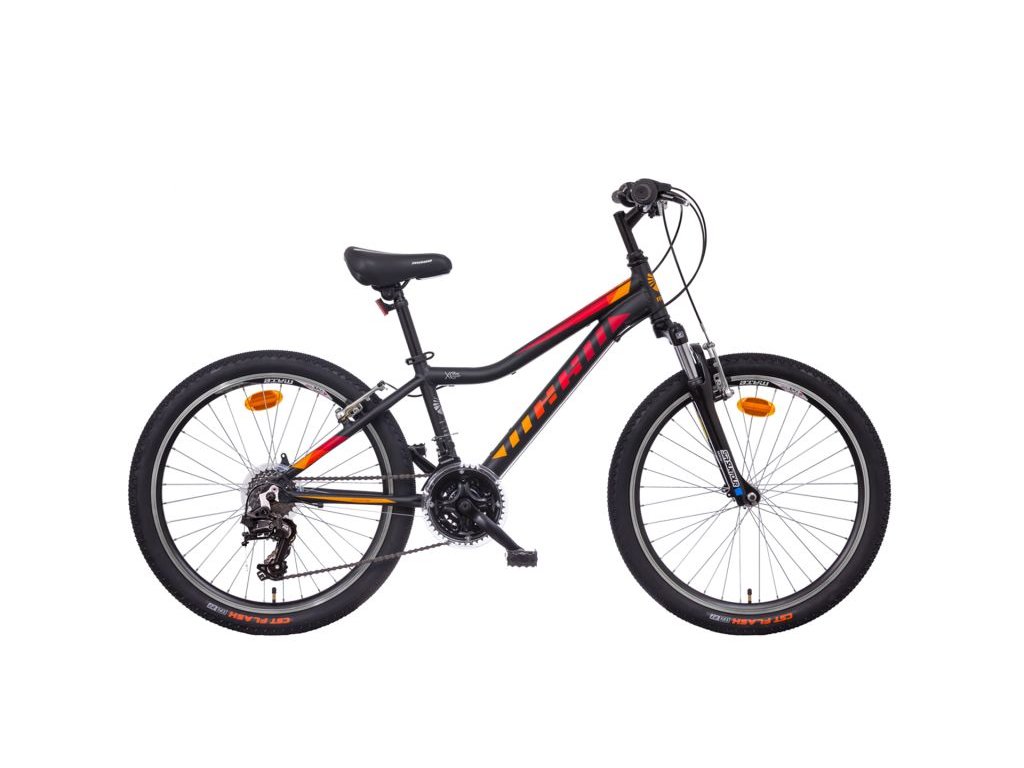 24" MAYO FIT V ,horské jízdní kolo s odlehčený UNI-style rámem (slitina hliníku AL6061), na kolech velikosti 24", vhodné pro dětí od 8-12 roků, přední odpružená vidlice SUNTOUR , Osazení SHIMANO TOURNEY , řazení otočné SHIMANO REVO , 18 převodů, dvojité ráfky, brzdy SACCON V-Brake , zapouzdřená středová osa, ALLOY náboje kol, pláště MITASRám: Aluminium AL6061, TIG welding, down tube bended Bi-Axial shape, top tube UNI-Style bended shape, S-Type seat stays, oversize headparts, velikost 13"