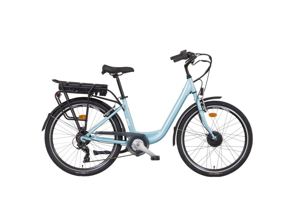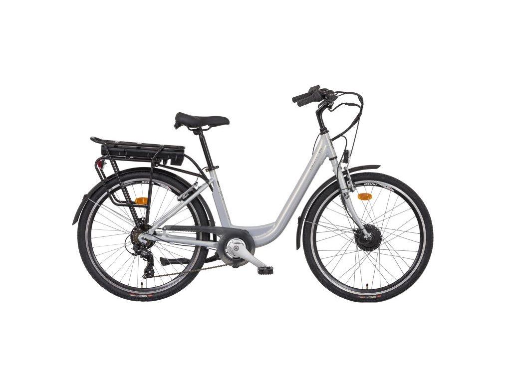 Elektrický mestský bicykel veľkosti 26" v šesťrýchlostnom prevedení, s motorom v zadnom náboji, základným akumulátorom 36V/10,4Ah v zadnom nosiči, LCD displejom, tromi stupňami podpory a kompletnou výbavou pre cestnú premávku. Bicykel vyhovuje norme STN EN 15 194: 2017, tzn. že je možné ho prevádzkovať na pozemných komunikáciach bez potreby vodičského oprávnenia a akýchkoľvek iných dokladov. Rám: AL6061, TIG welding, Oversize Head parts, Spevnená spodná rúra s úrovňou 380mm Vidlica: Hi-TEN pevná, tapered stays/SUNTOUR CR7-V 40mm Motor: Motor max výkon 250W, Akumulátor: 36V/10,4Ah, nabíjačka 42V/3A - doba nabíjania 2-6hod podľa stupňa vybitia akumulátora. Predný menič: - Predný náboj: - Zadný menič: SHIMANO TY-300 Zadný náboj: - Radenie: SHIMANO RS35 REVO6 Ráfiky: M.A.T.E. DWR-30 Reťaz: INDEX 6/7spd Plášte: MITAS FLASH 26x1,75" Kľuky: ALLOY 38t 170mm Výplet: Pozink CZ 2,0mm Pedále: City Plast Riadidlá: Steel Raised 620mm Stredové zloženie: - Predstavec: Steel 25,4/180mm Brzdy: SACCON FV-951 / Coaster Sedlovka: Steel 27,2/300mm Počet prevodov: 6 Sedlo: M.A.T.E. CITY Elastomer Hmotnosť: 22,2kg Rukoväte: HERRMANS MOZA Doplnky: Blatníky RPZ so vzperami, oceľový nosič, LED osvetlenie, stojan Upozornenie: Vzhľadom na situáciu s nedostatkom komponentov sa špecifikácia môže zmeniť. K cene je účtovaný recyklačný poplatok /RP/ v zmysle §32 ods.5 zákona č. 79/2015 Z. z. o odpadoch vo výške 4,80€ bez DPH/5,76€ s DPHDoplňkové parametry