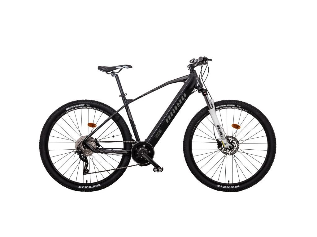 ELEKTROKOLO ve velikosti 29",vhodné na CROSS-COUNTRY ježdění, dojezd 35 -120 km, baterie Li-ion 36V/14 Ah integrovaná v rámu kola, integrovaný středový motor 36V /250W, odlehčený rám (slitina hliníku AL6061), přední odpružená vidlice SUNTOUR XCR zdvih 100 mm, sportovní osazení SHIMANO DEORE, páčkové řazení SHIMANO FDM, 10 převodů, SHIMANO HYDRAULIC DISC brzdy, dvojité ráfky, pláště CSTElektrokolo MAYO e-XC 29 FLASCH POWER BB DISC s motorem 36V/250W integrovaným ve středu rámu , akumulátor v rámu kola, LCD displey s ukazatelem cyklo funkcí, nastavením stupněm podpory v 6 ti úrovních. Podle nastaveného stupně podpory elektrokolo dávkuje kroutící moment až do rychlosti 25 km/h. Na jedno nabití je dojezd 35 až 120 km v závislosti na použitém akumulátoru, profilu tratě, hmotnosti a asistence jezdce, a nastaveného stupně podpory. akumulátor , 36V/14 Ah, Elektrokolo vyhovuje normě STN EN 15 194, tzn. že je možné ho provozovat na pozemních komunikacích bez nutnosti řidičského průkazu a jiných dokladů.