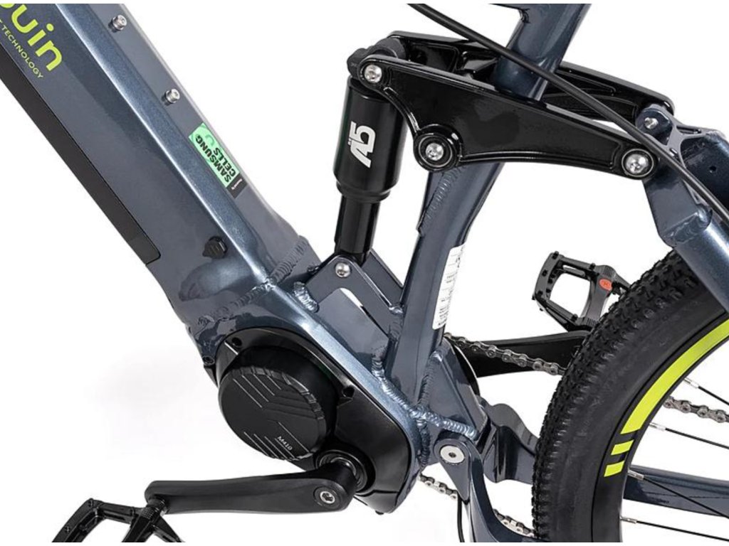 Hliníkový rám s dvojitým odpružením tlumí nerovnosti a zvyšuje pohodlí při jízdě po lesních cestách i polních stezkách.