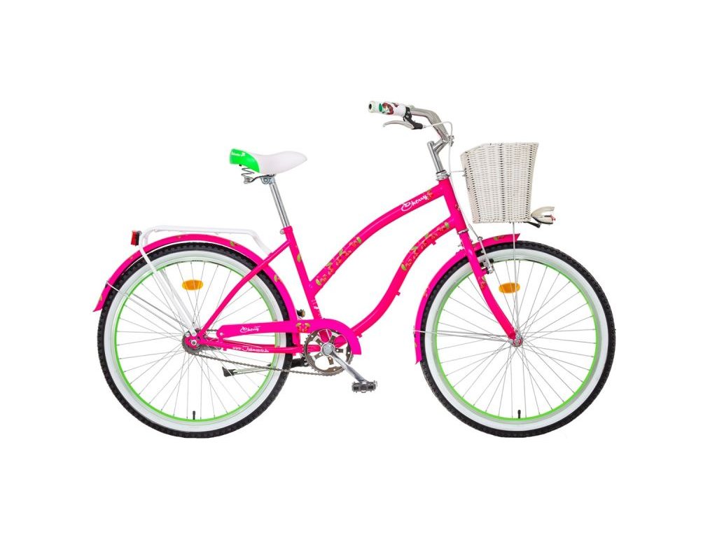 LIBERTY CHERRY kolo ve stylu plážový CRUISER velikosti 26", 1- no rychlostní provedení , rám Hi-TEN, pohodlné rozšířené šité sedlo, rukojeti imitace kůže. Komfortní jízdu podporují široké 2" pláště obuté na zpevněných DOUBLEWALL ráfcích. Výbava kola je rozšířená o přední koš, nosič se záklopem, sadu LED osvětlení, blatníky v barvě kola a stojan.Rám: Hi-TEN steel, TIG welding, CRUISER LADY Style, Oversize Head parts