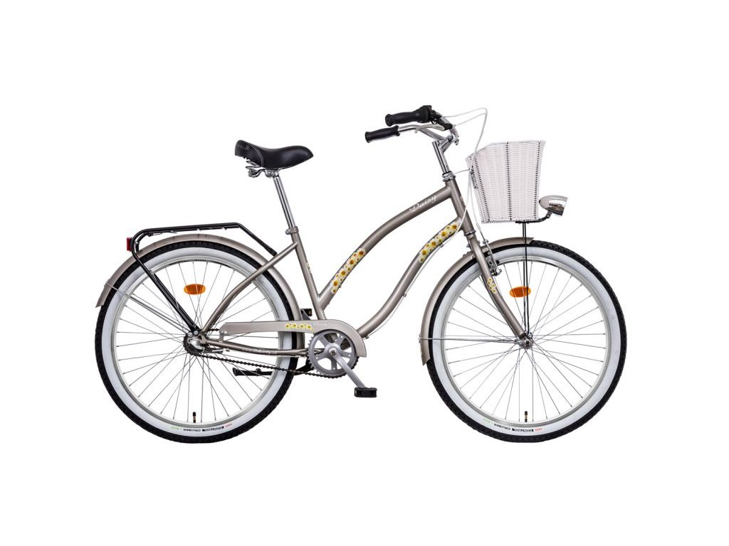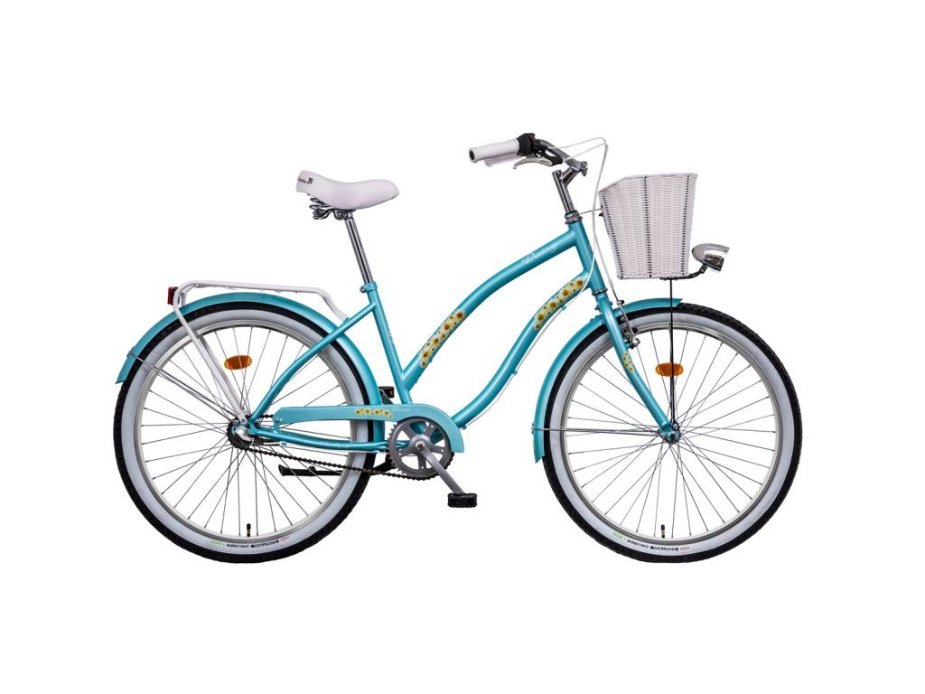 LIBERTY DAISY kolo ve stylu plážový CRUISER velikosti 26", 3 rychlostní varianta, osazení SHIMANO NEXUS, v nabídce také 1- no rychlostní provedení , rám Hi-TEN, pohodlné rozšířené šité sedlo, rukojeti imitace kůže. Komfortní jízdu podporují široké 2" pláště obuté na zpevněných DOUBLEWALL ráfcích. Výbava kola je rozšířená o přední koš, nosič se záklopem, sadu LED osvětlení, blatníky v barvě kola a stojan.Rám: Hi-TEN steel, TIG welding, CRUISER LADY Style, Oversize Head parts