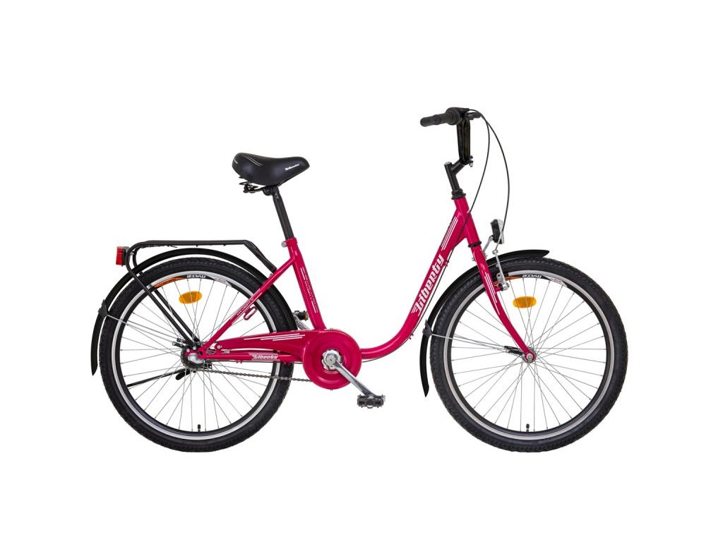 LIBERTY CLASSIC :Městské jízdní kolo CITY velikosti 24", snížený rám, 3 rychlostní, osazení SHIMANO NEXUS,měnič v zadním náboji pevná vidlice, pohodlné širší sedlo, brzdy přední V- brake, zadní proti šlapná (torpédo), zesílené dvojité ráfky, pláště MITAS, sada LED osvětlení, stojan, nosič, blatníky. Jízdní Kolo LIBERTY CLASSIC je plně vybavené pro provoz, Hmotnost 15 kgRám: Hi-TEN steel, TIG welding, Oversize Head parts, U-TYPE konštrukcia, Úroveň spodnej rúry - 325mm