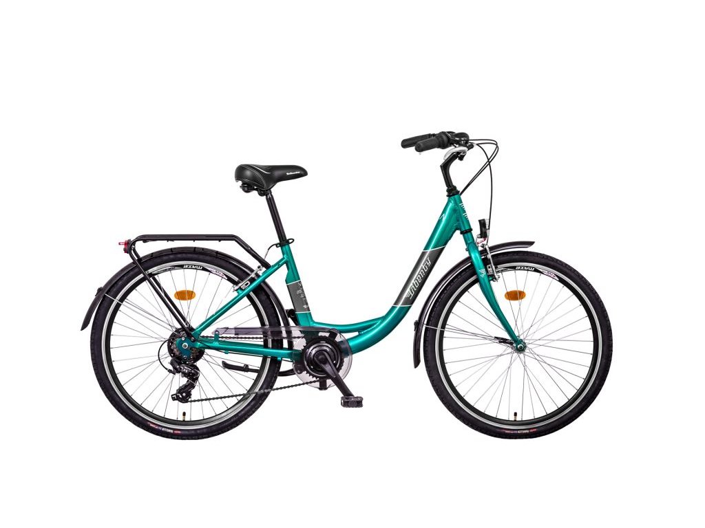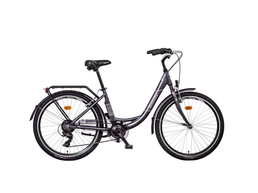 Městské jízdní kolo CITY 26", odlehčený snížený hliníkový rám (AL 6061),6-ti rychlosti, řazení SHIMANO REVOSHIFT, měnič SHIMANO TOURNEY,v základu pevná vidlice (odpružená za příplatek) pohodlné širší sedlo, nastavitelný představec, brzdy V- brake , zesílené dvojité ráfky, pláště MITAS, zapouzdřená středová osa, sada LED osvětlení, stojan, nosič, blatníky. Kolo je plně vybavené pro provoz.Rám: AL6061, TIG welding, Oversize Head parts, Spevnená spodná rúra s úrovňou 380mm