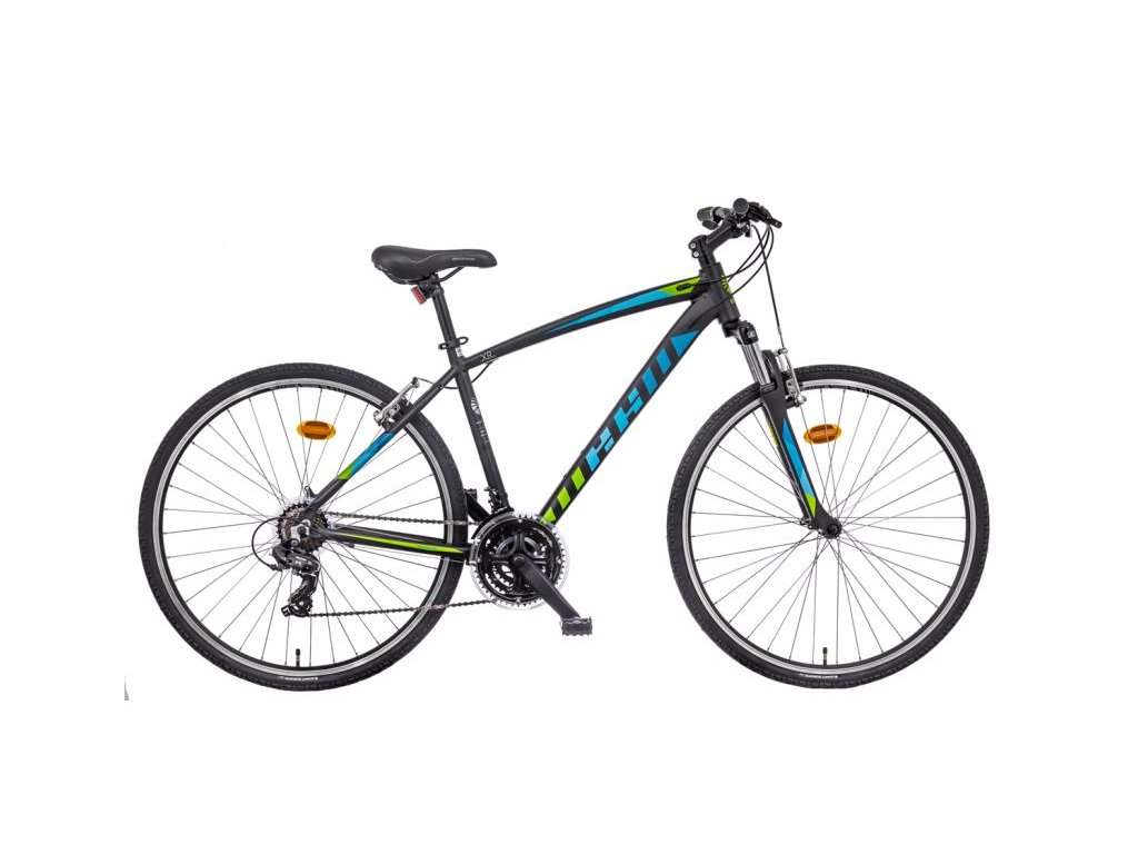 Croosové jízdní kolo MAYO XR BASIC LITE, odlehčený rám (slitina hliníku Al 6061) se zahnutou spodní trubkou, integrované lanka do rámu kola, přední odpružená vidlice SUNTOUR M3010AL , páčkové řazení, 21 převodů, dvojité ráfky, brzdy V-brake, pláště CST, v nabídce také jako kompletně vybavený model trekkingRám: Aluminium AL6061, TIG welding, Integrated head parts, Internal cable routing